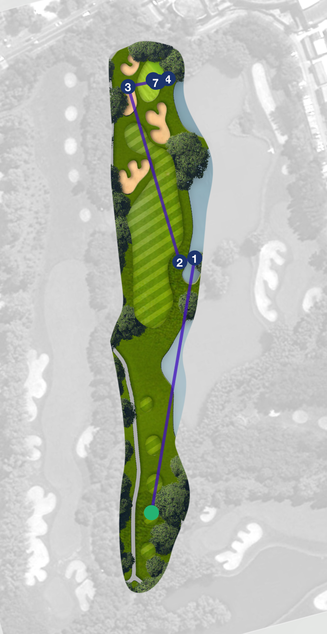 Hole 1 5 | Hole 2 4 | Hole 3 3 | Hole 4 4 | Hole 5 4 | Hole 6 3 | Hole 7 4 | Hole 8 3 | Hole 9 7 | Hole 10 4 | Hole 11 4 | Hole 12 4 | Hole 13 7 | Hole 14 4 | Hole 15 4 | Hole 16 4 | Hole 17 4 | Hole 18 6 |
